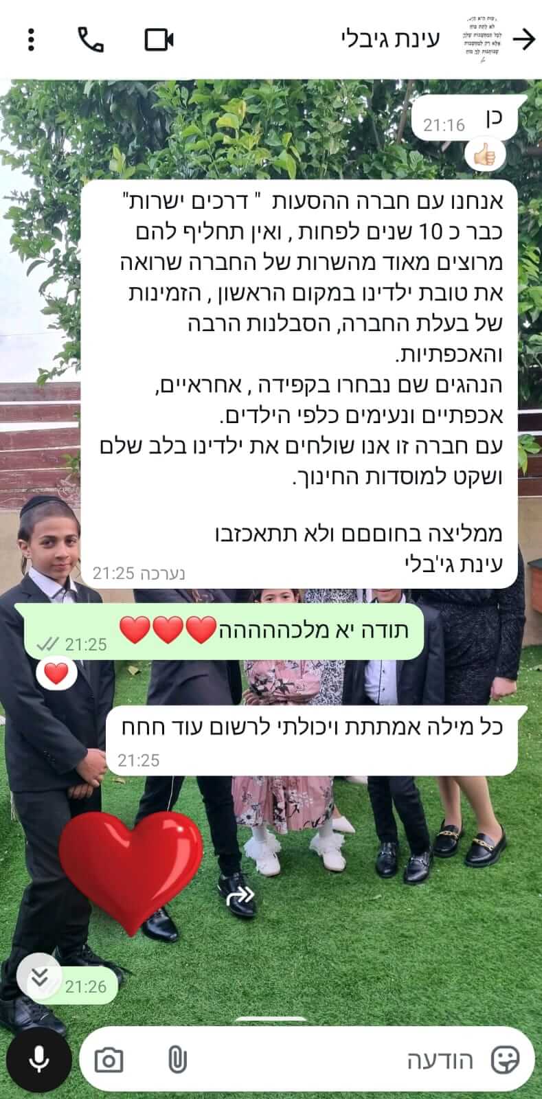 - שירות יוצא דופן: אנו דוגלים בשירות מצוין, אישי ואנושי, המוענק על ידי צוות הנהגים המיומן שלנו (לעמוד ההמלצות).